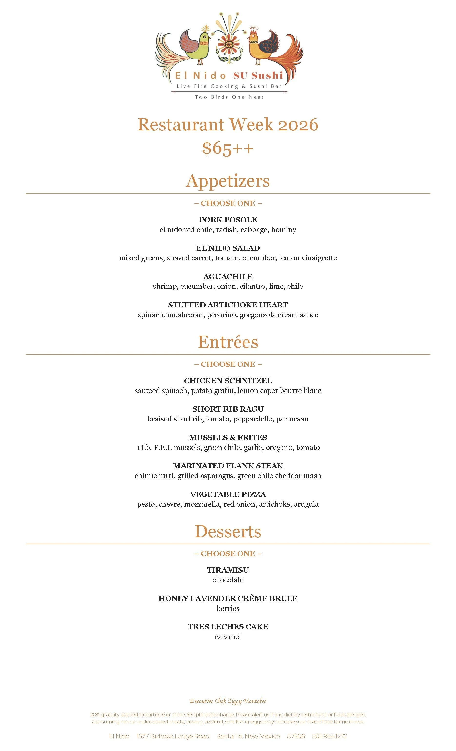 El Nido has a vision to bring you a fun and creative dining experience. The dining room features two fireplaces to keep you cozy and warm along with an energetic open kitchen that has a wood-burning oven and open-fire grill. Meats, fish and vegetables are kissed by fire over open embers creating amazing flavors. Or you can relax in the bar area and enjoy craft cocktails and a sommelier procured wine list.